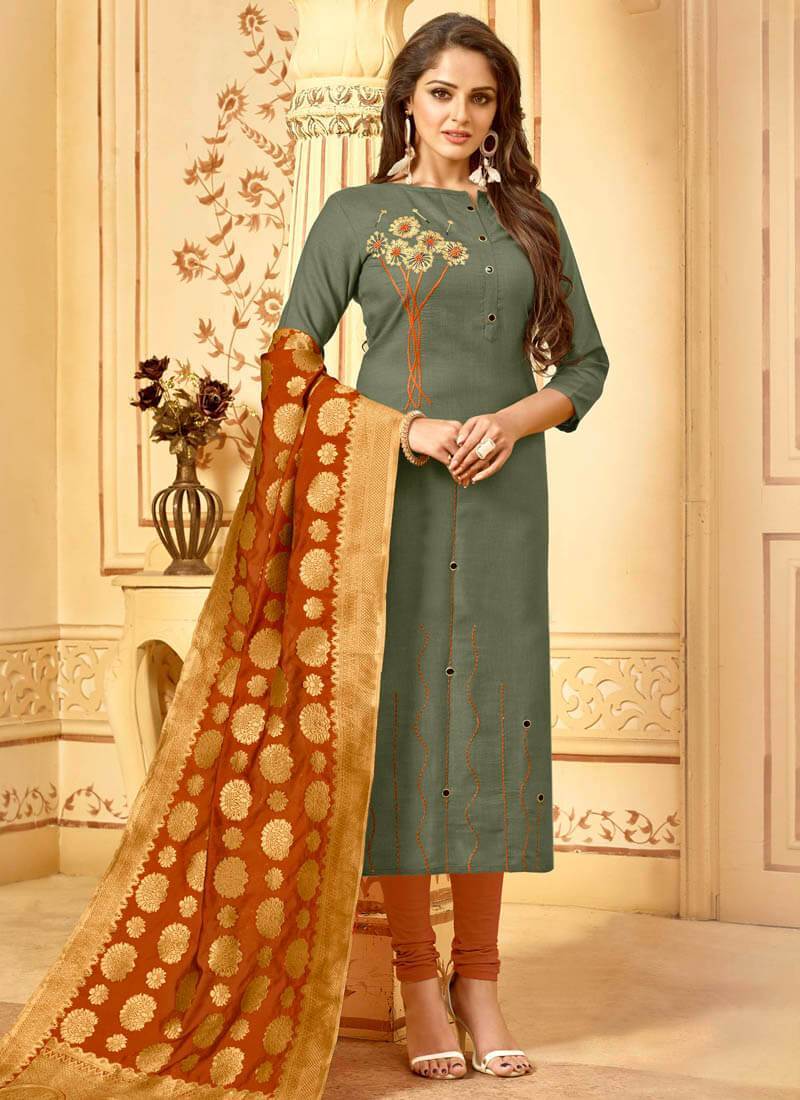 Khakhi Heavy Cotton Slub Chudidar Straight