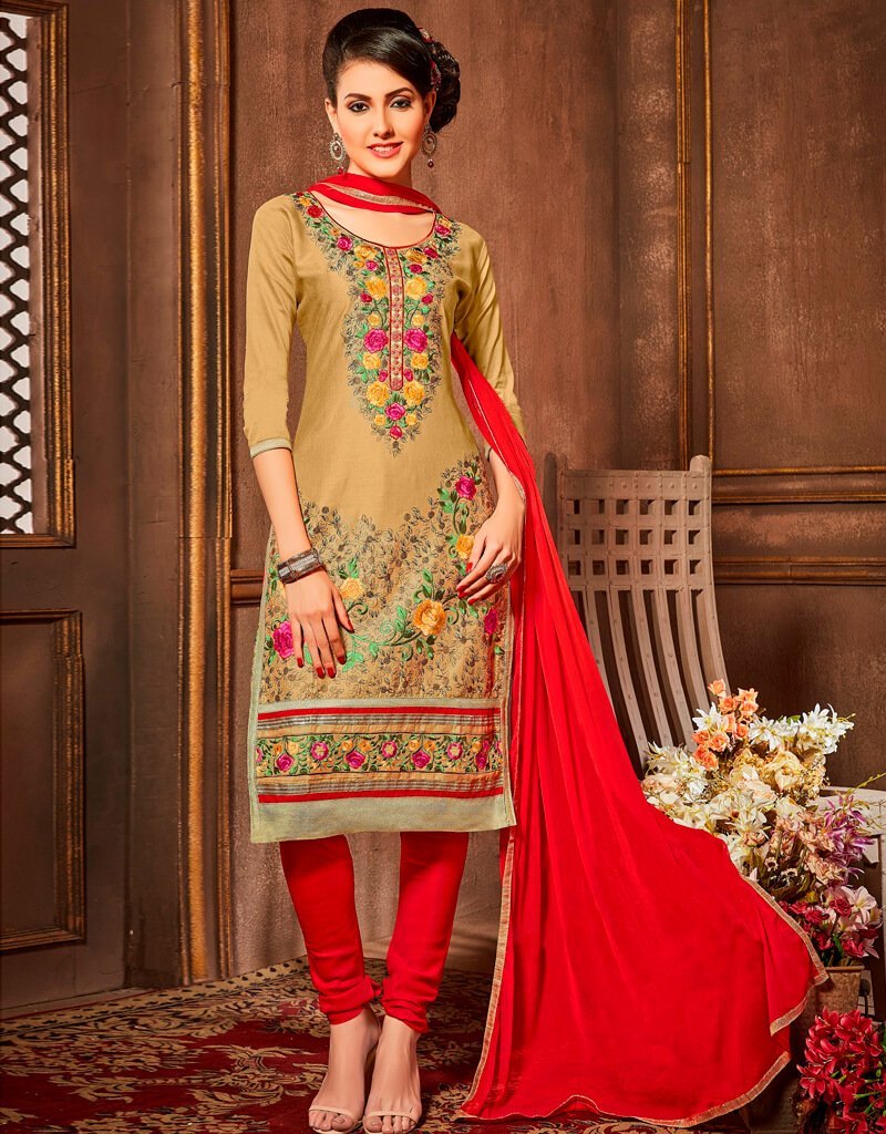 Light Brown Glazz Cotton Straight Chudidar