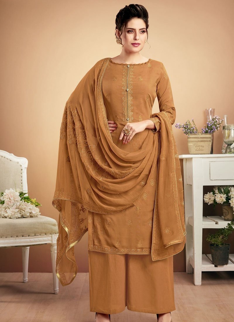 Designer Casual Wear Heavy Muslin Plazzo Suits