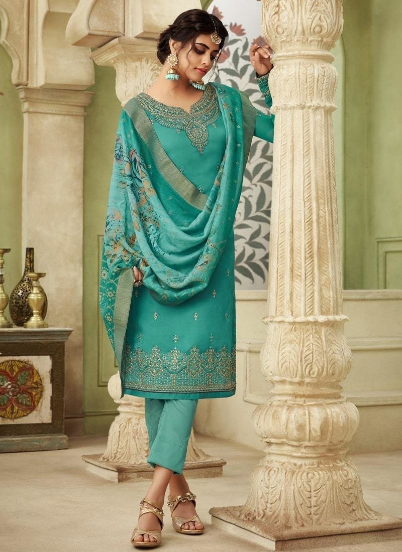 Light Brown Pant style Suit Satin Georgette