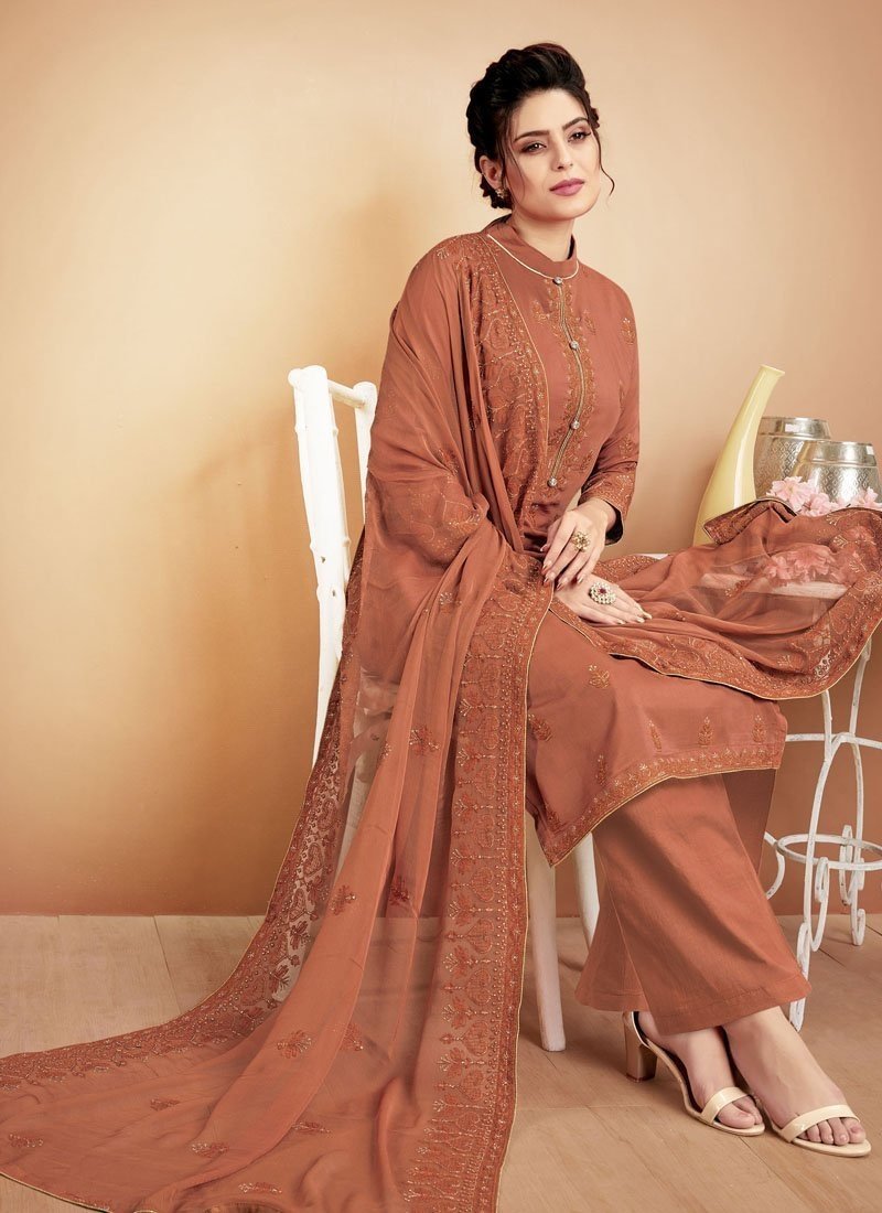 Designer Casual Wear Heavy Muslin Plazzo Suits