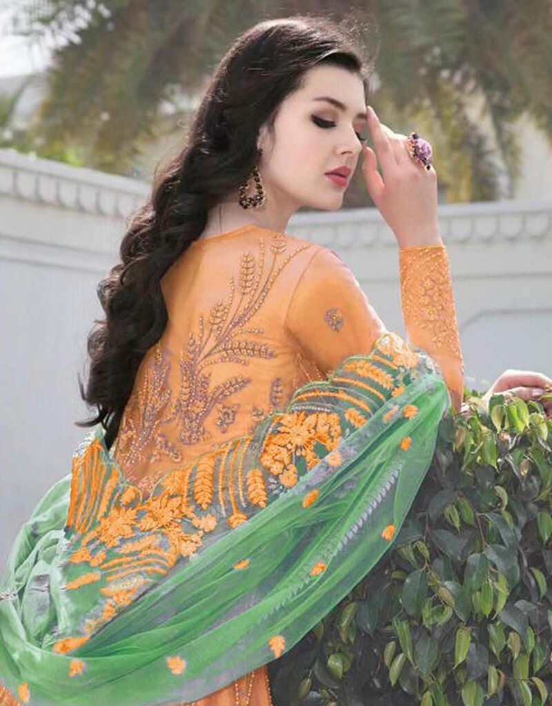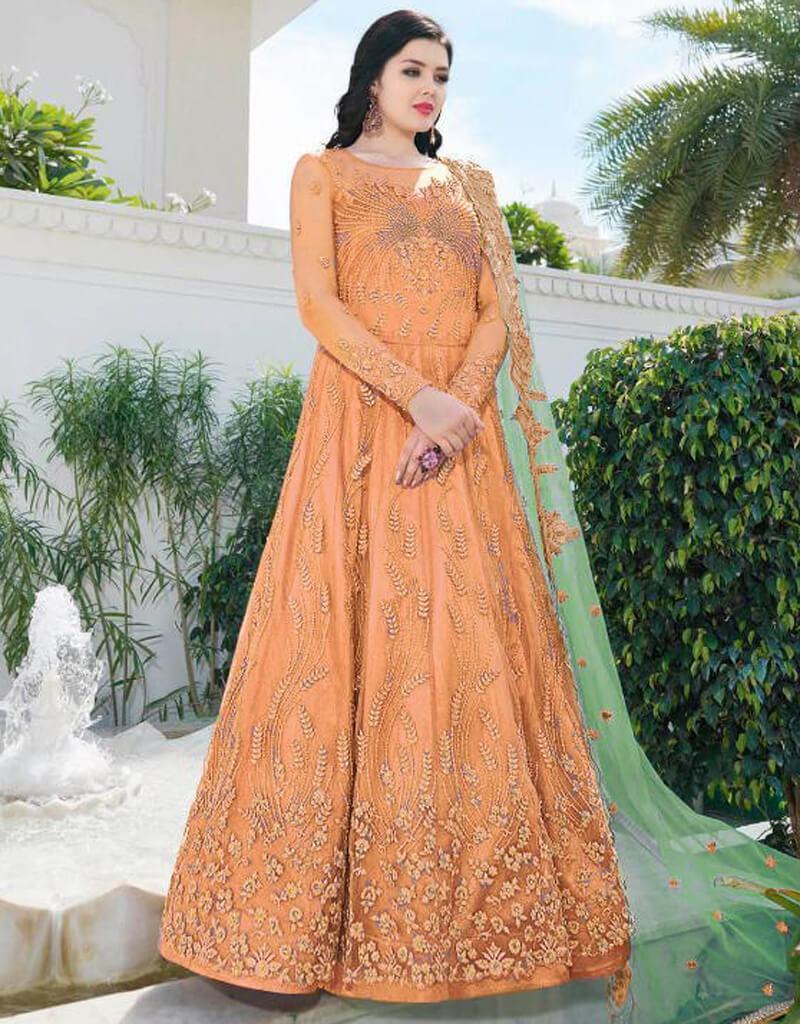Light Orange Heavy Buterfly Net Suit Anarkali
