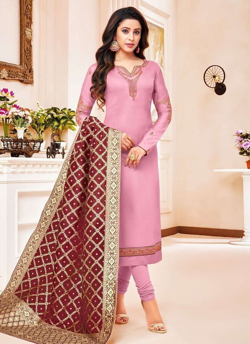 Light Pink Pure Cotton Jam Silk Chudidar Straight