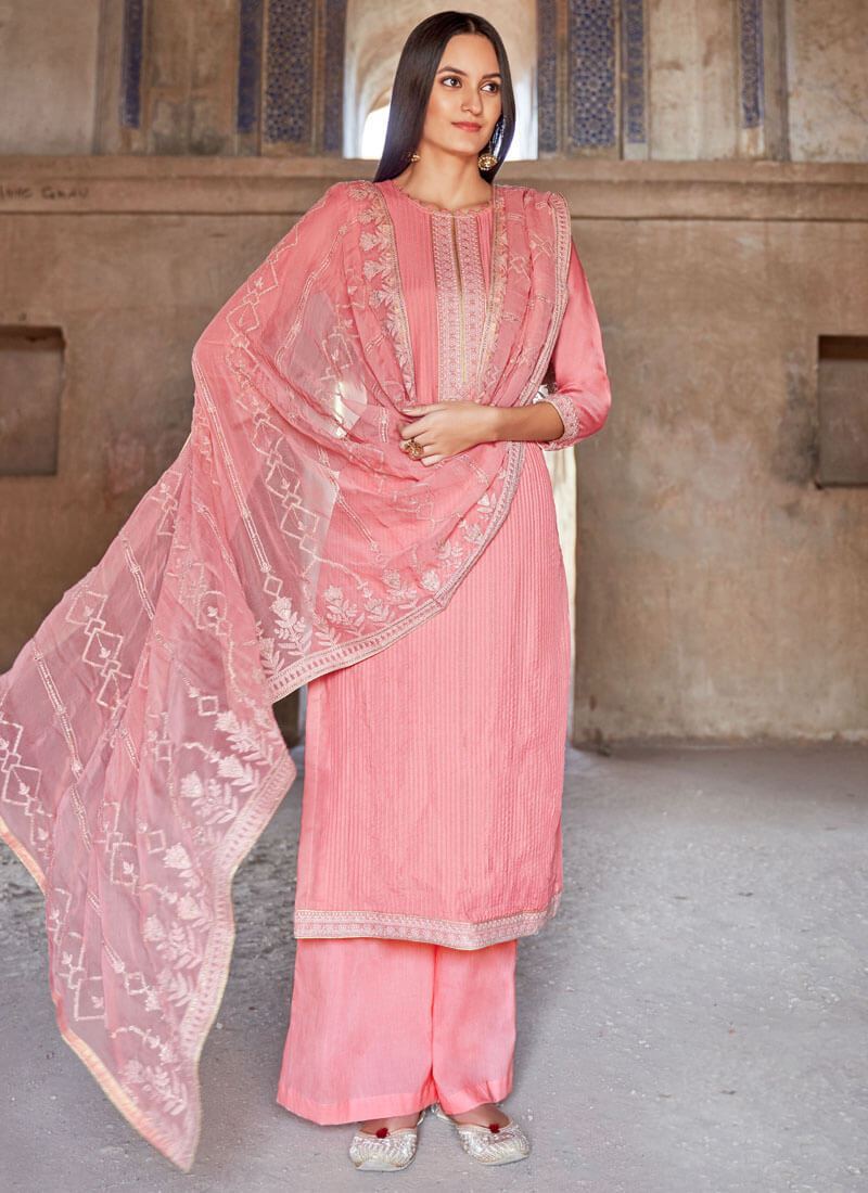 Light Pink Viscose Muslin Palazzo Suit