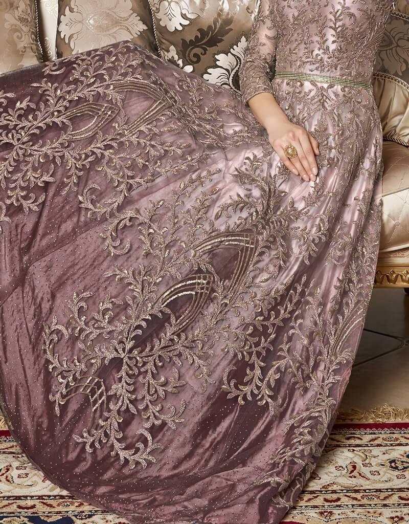 luxury Women Light Wine colored Salwar Kameez in Anarkali Style made with Net top and Net Bottom fabric