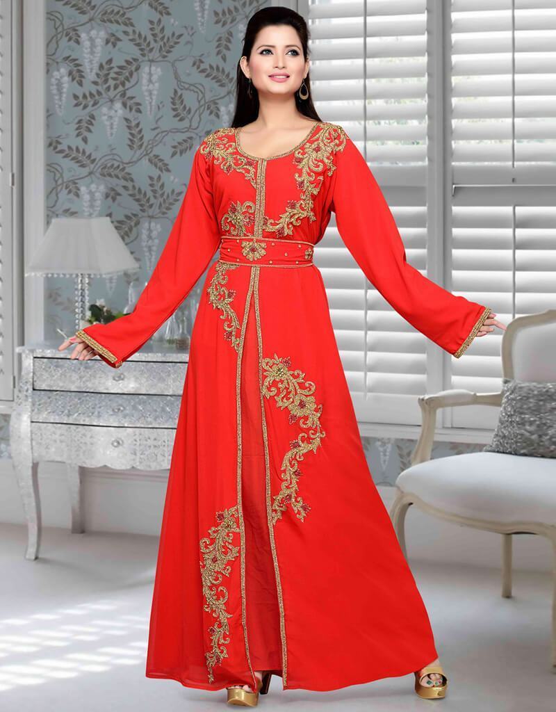 - Designer moroccan style red colored kaftan dress for women specially for party