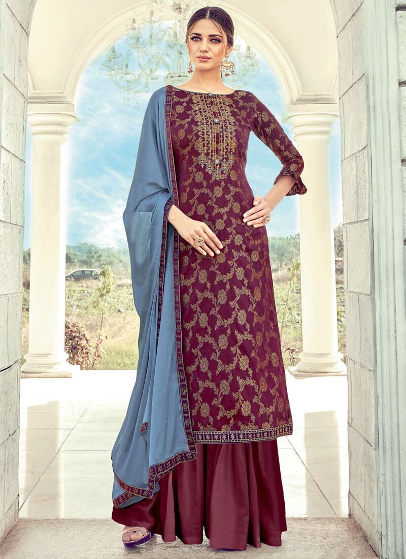Designer Party Wear Pure Banarasi Jacquard Plazzo Suit