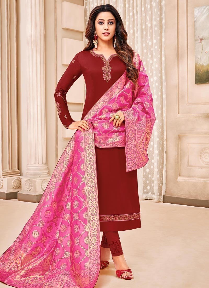 Maroon Pure Cotton Jam Silk Chudidar Straight