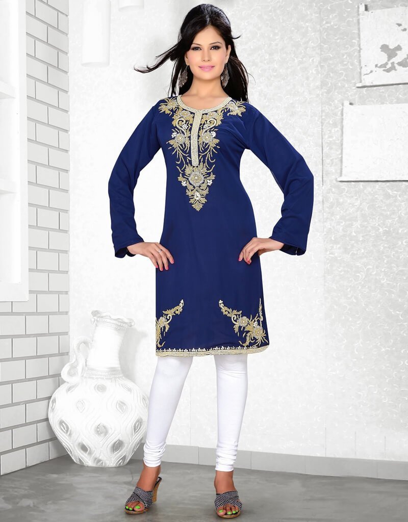 - This Pretty Piece Is A Fairy Tale That Begins To Unfold As You Reveal Your Beauty In It. Looking Amazing With Attachment Of Mesmerizing Blue Salwar Kaftan .This Attire Is Nicely Designed With Embroidery Work.