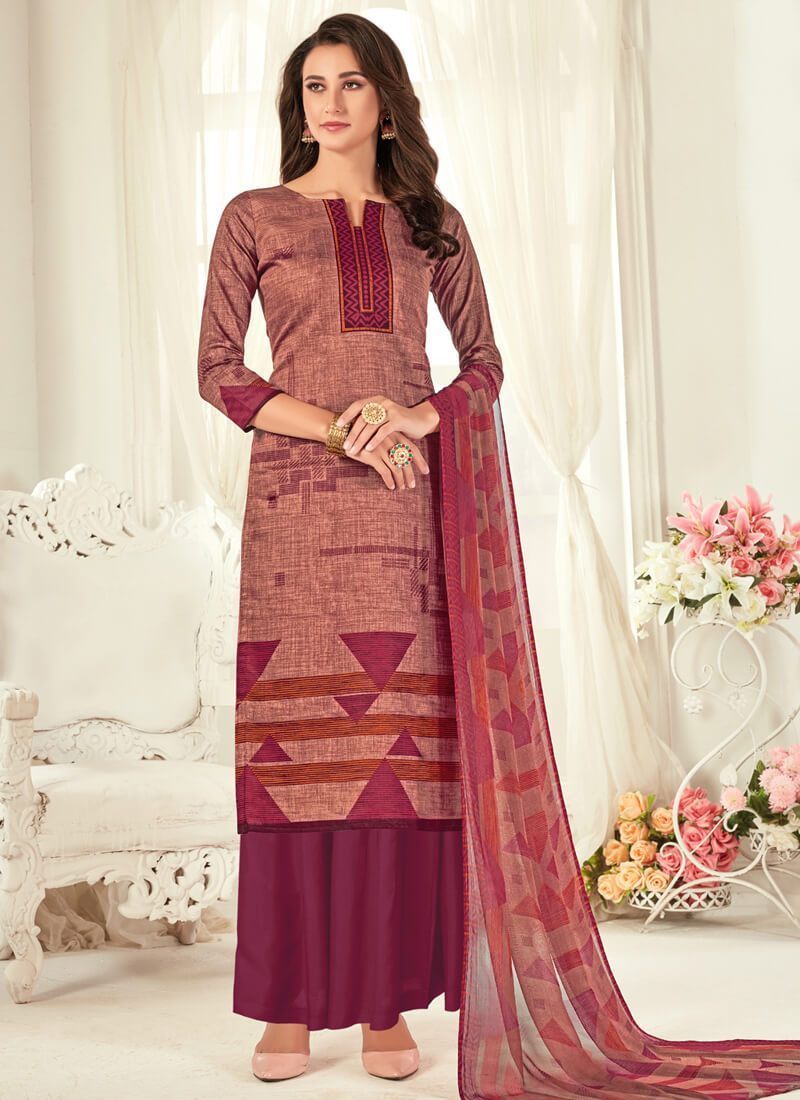 Designer Casual Wear Pure Zam Cotton Plazzo Suit