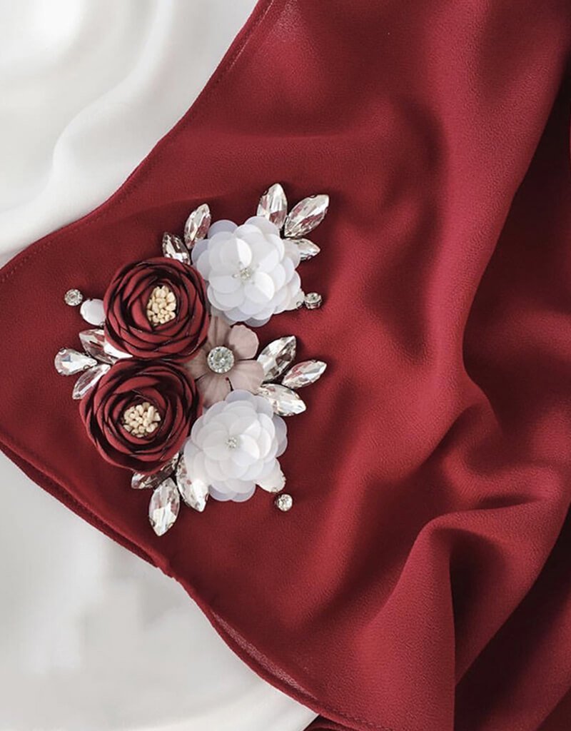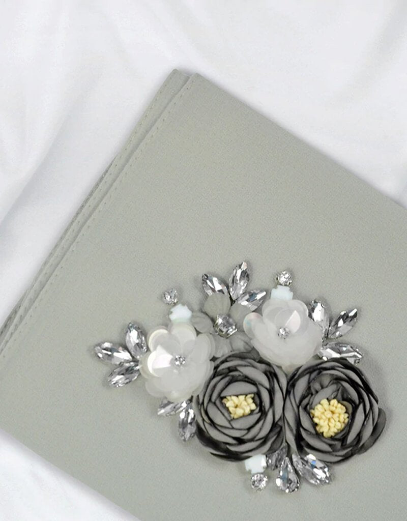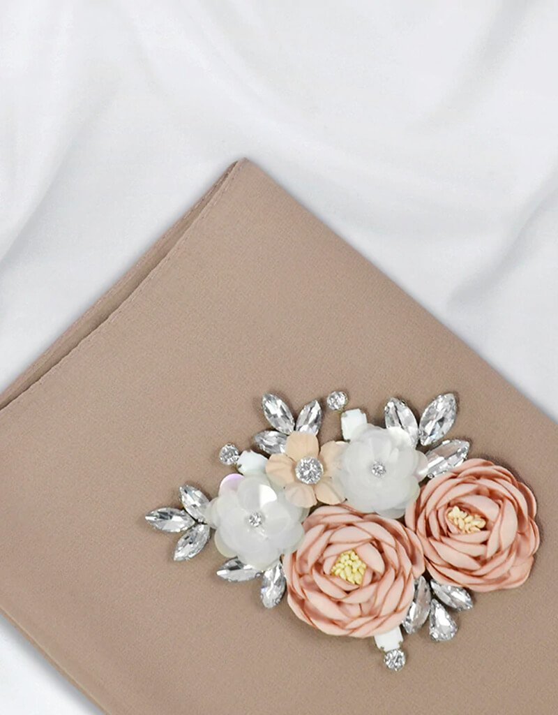 Women Chiffon Hijab in Pearl Hand Beaded