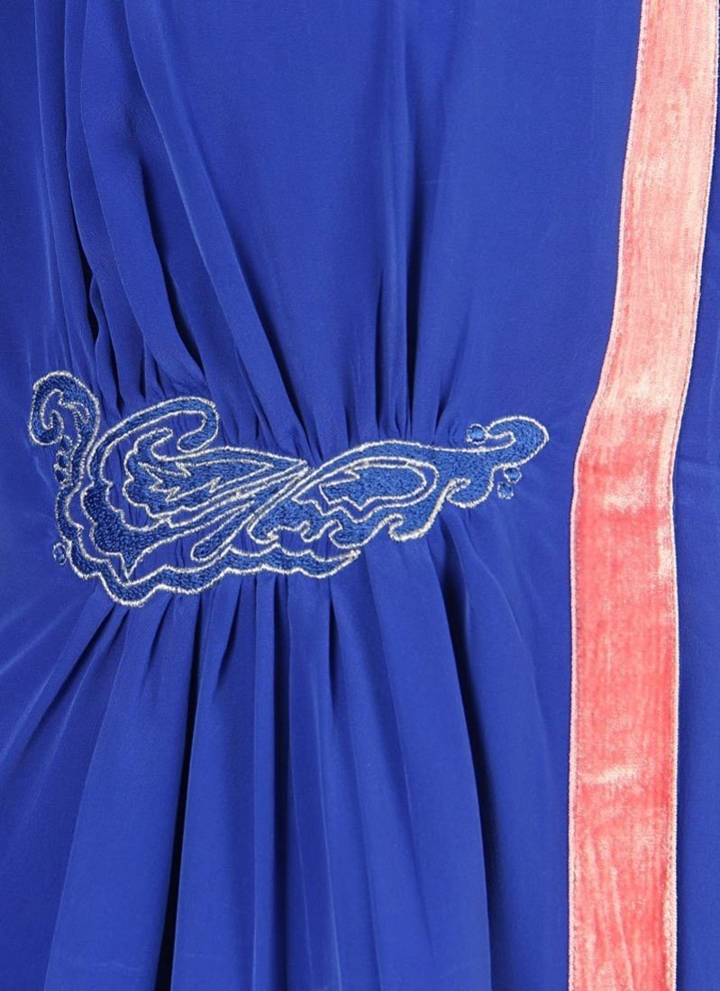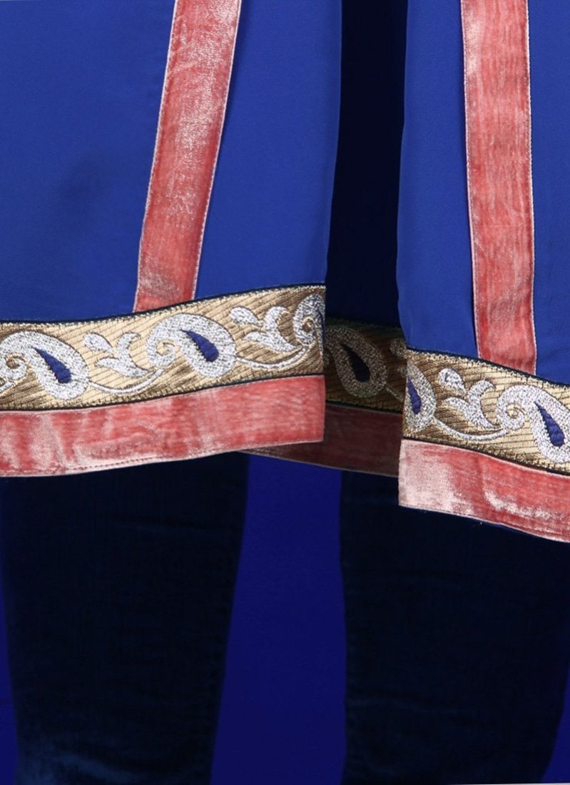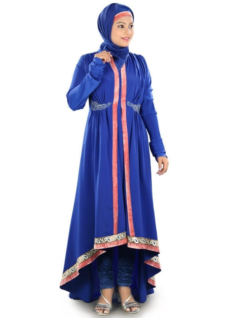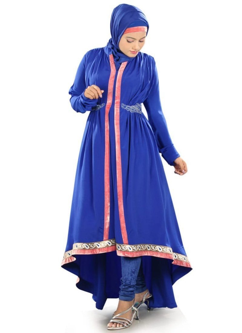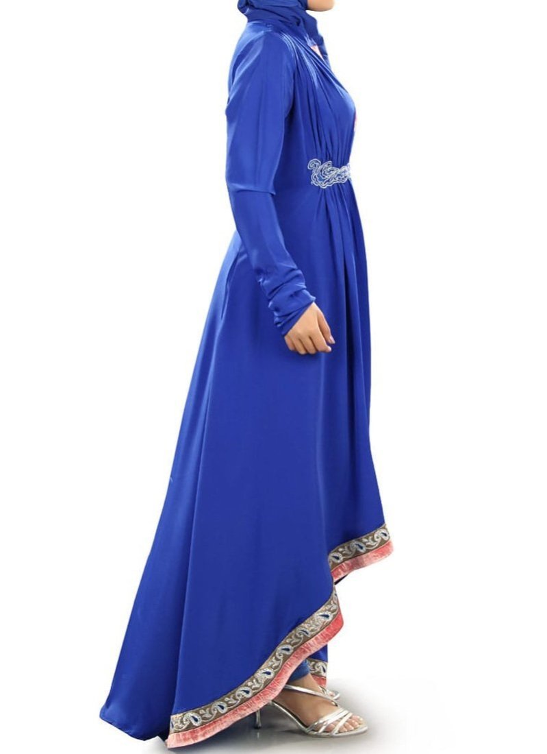 Beautiful royal blue trail-cut Abaya at Arabicattire designed specially to wear on special occasions, wear it with it's matching hijab set to complete the look