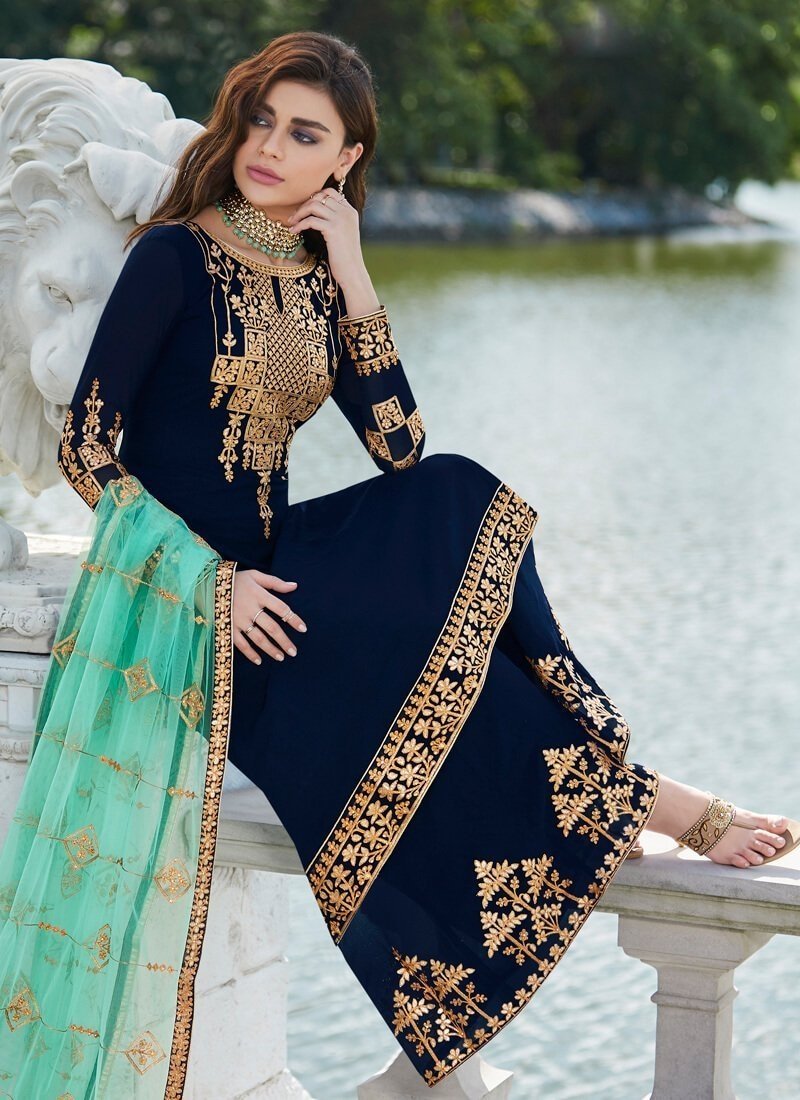 Navy Blue Palazzo style Suit Real Georgette