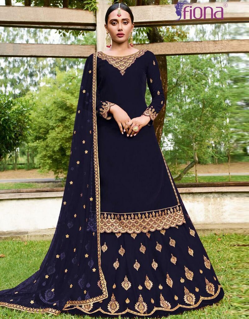 Navy Blue Heavy Fux Georgette Straight Lehenga