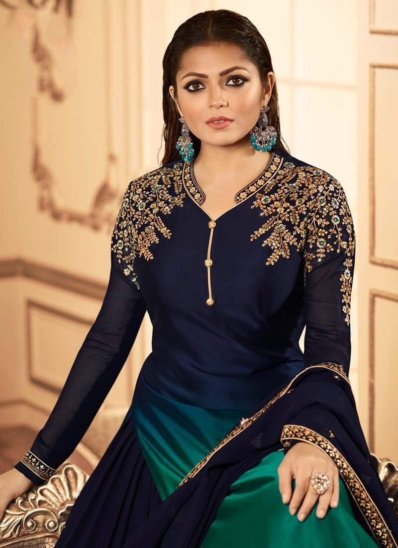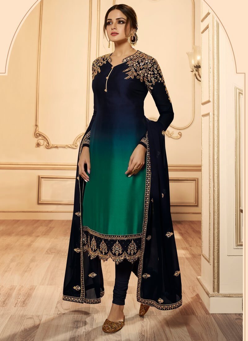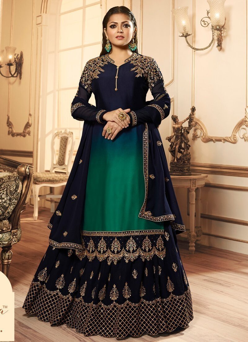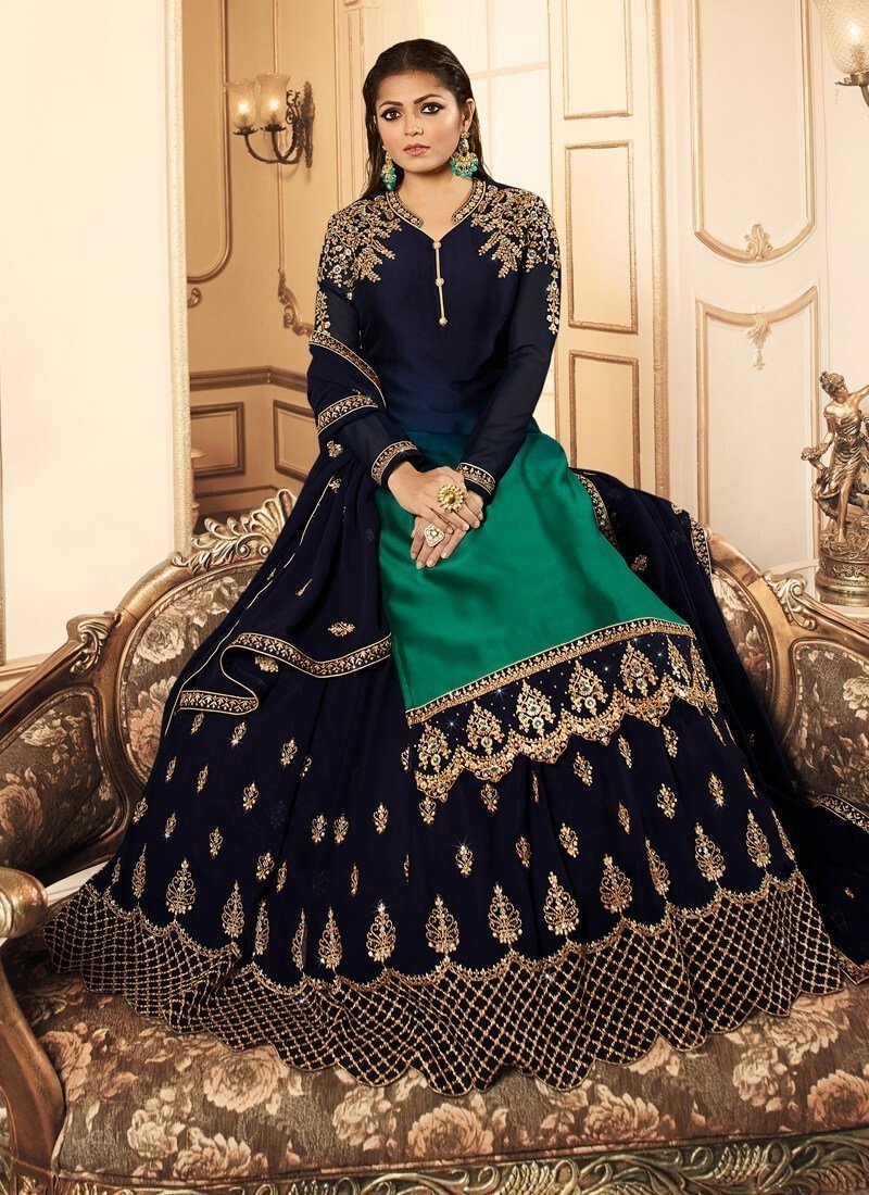 Navy Blue Lehenga style Salwar Kameez Georgette Satin