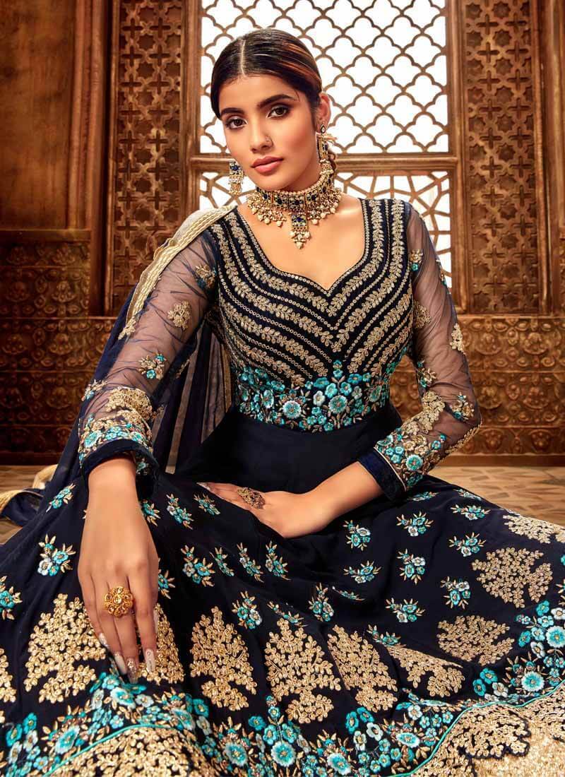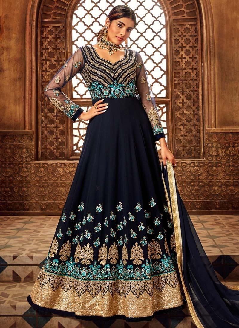 Navy Blue Pure Georgette Anarkali Suit