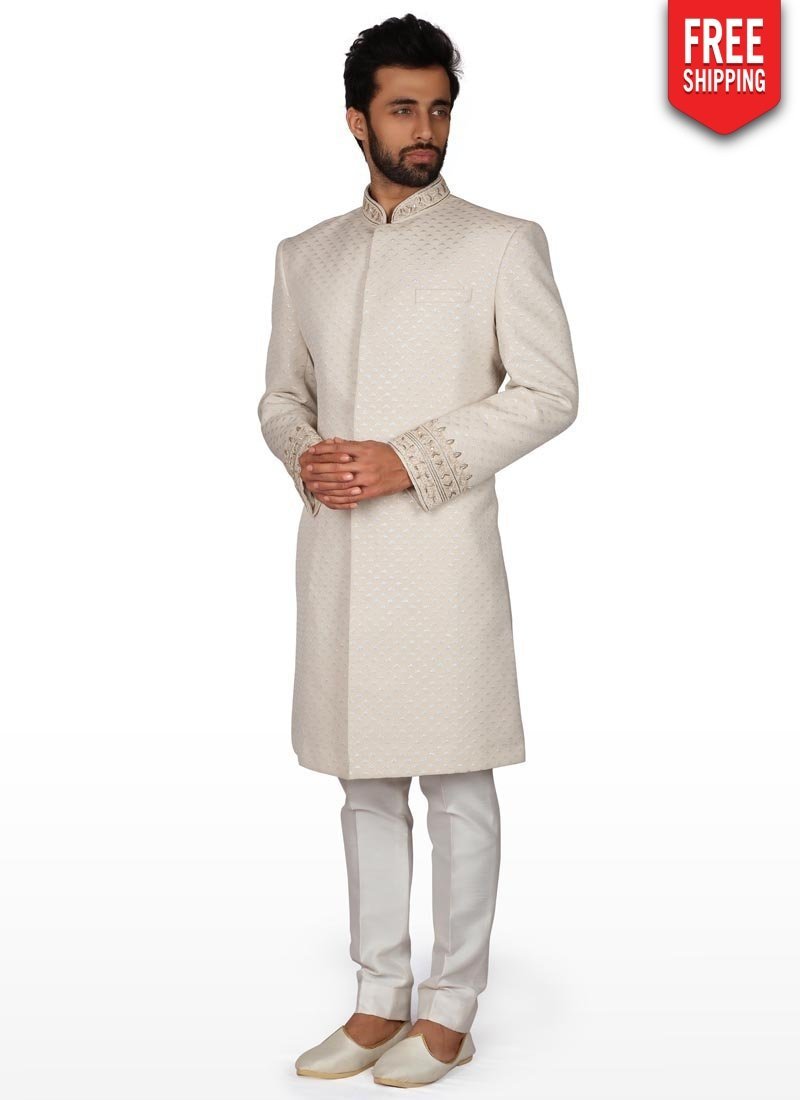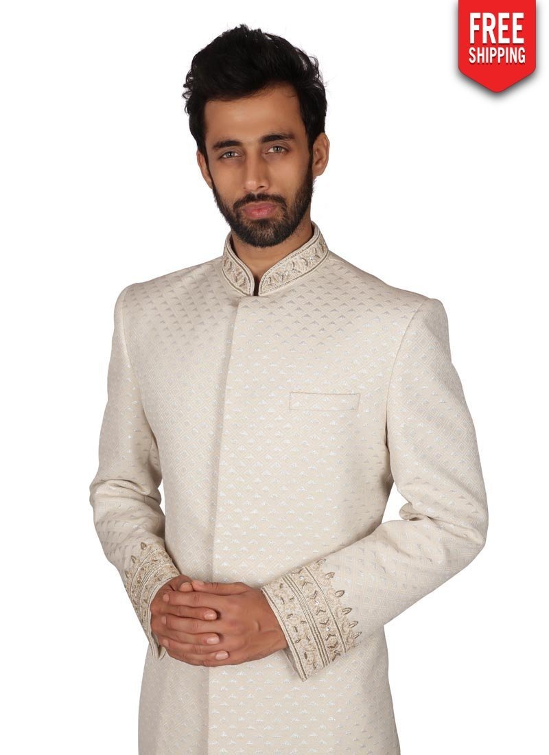 Off White Kurta Brocade Payjama