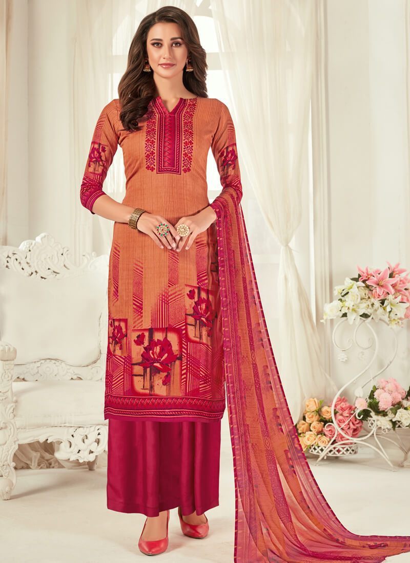 Designer Casual Wear Pure Zam Cotton Plazzo Suit