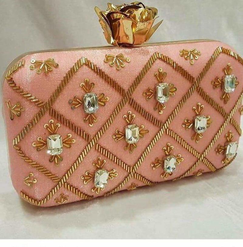 Peach Classic Women Embroidered Clutches
