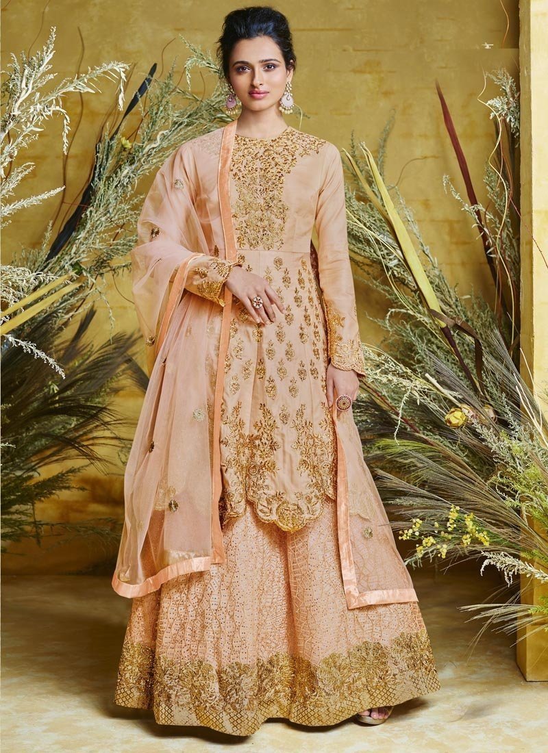 Peach Heavy Net With Pure Silk Lehenga Anarkali