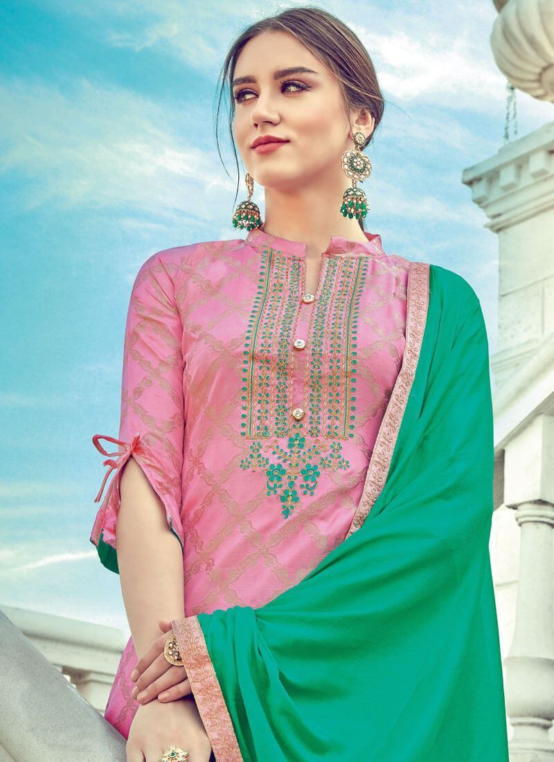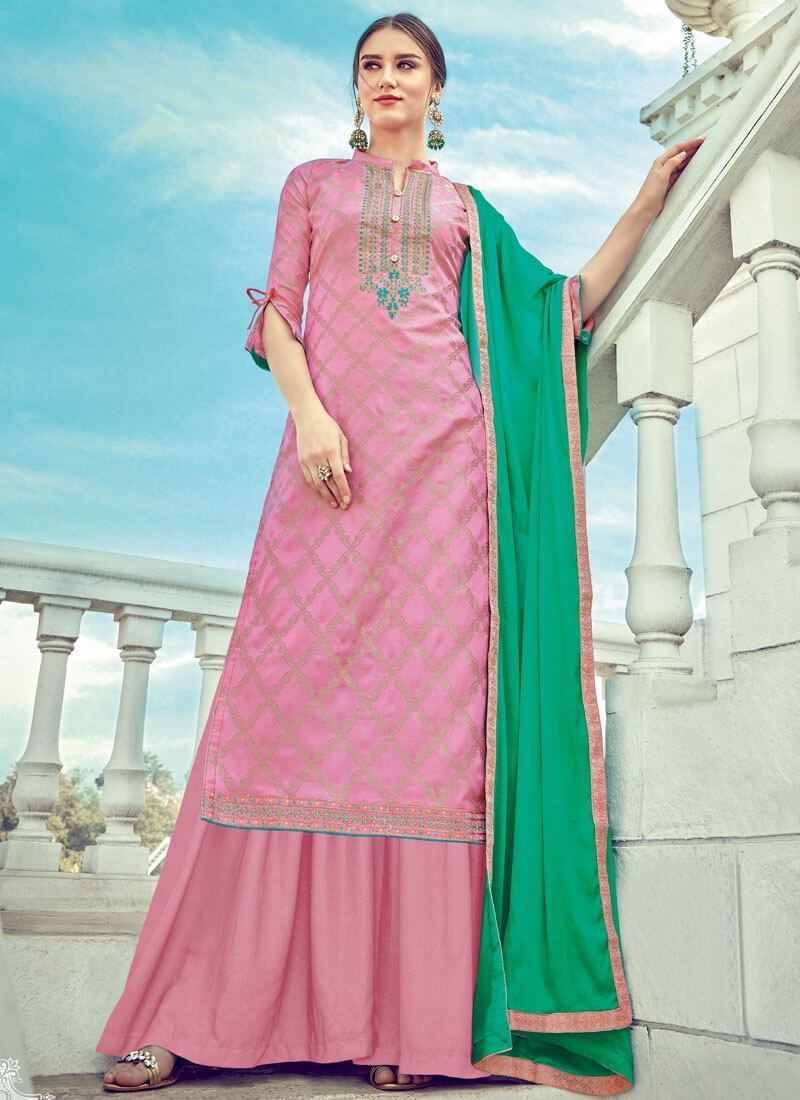 Pink Pure Banarasi Jacquard Palazzo Dress