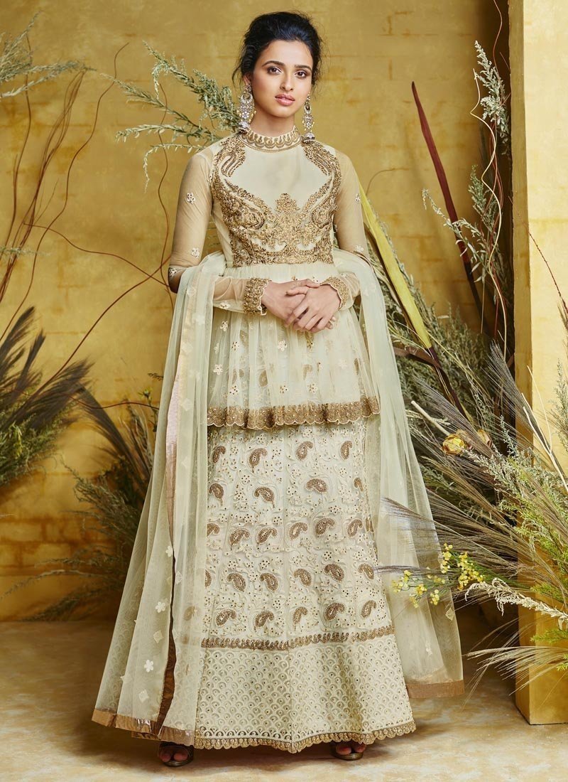 Pista Heavy Net With Pure Silk Lehenga Anarkali