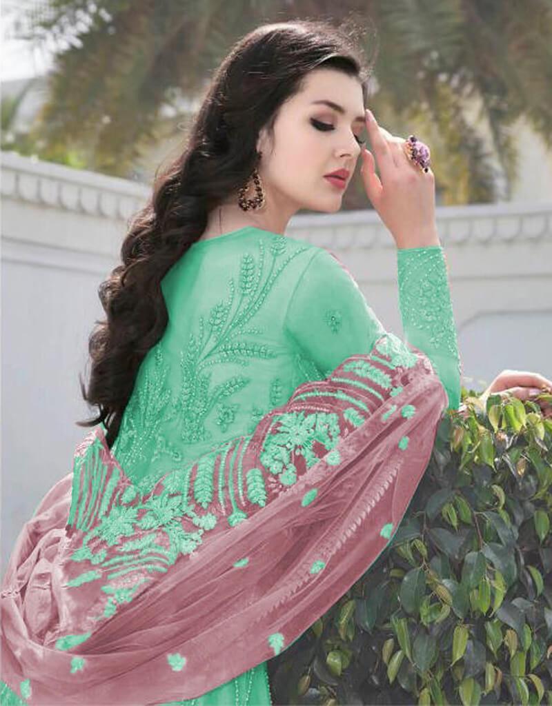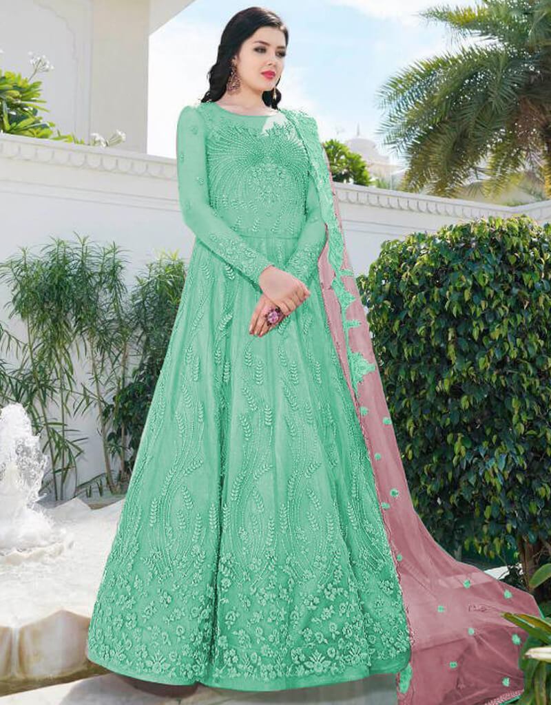 Rama Green Heavy Buterfly Net Suit Anarkali