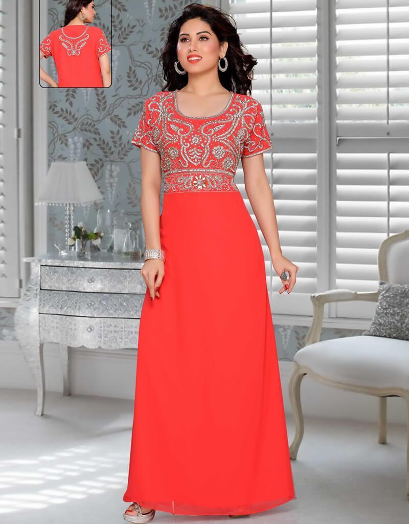 - Give In To The Exotic Confluence Of Today & Tomorrow In This Beautiful Attire Outstanding Craftmanship Of Embellishments Exhibited In This Extraordinary Red Morocan Style Kaftan.This Beautiful Attire Is Showing With Amazing Work.