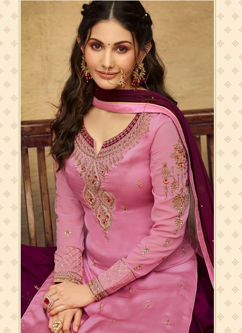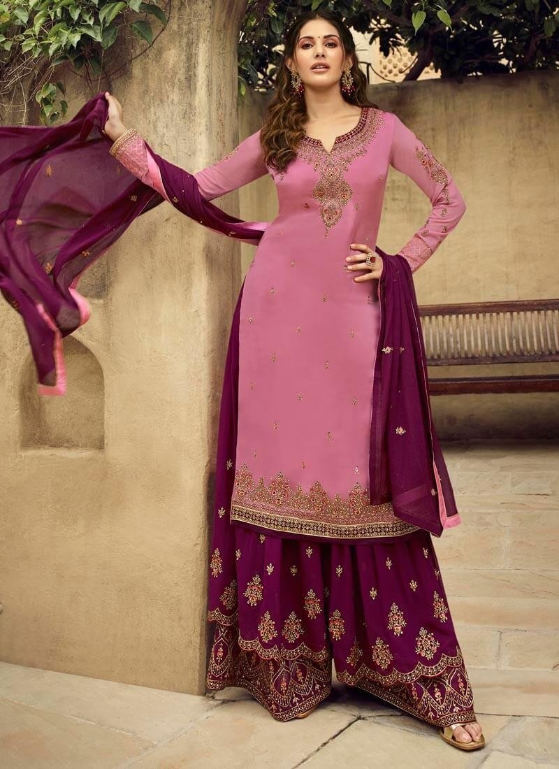 Rose Pink Satin Georgette Sharara Suit