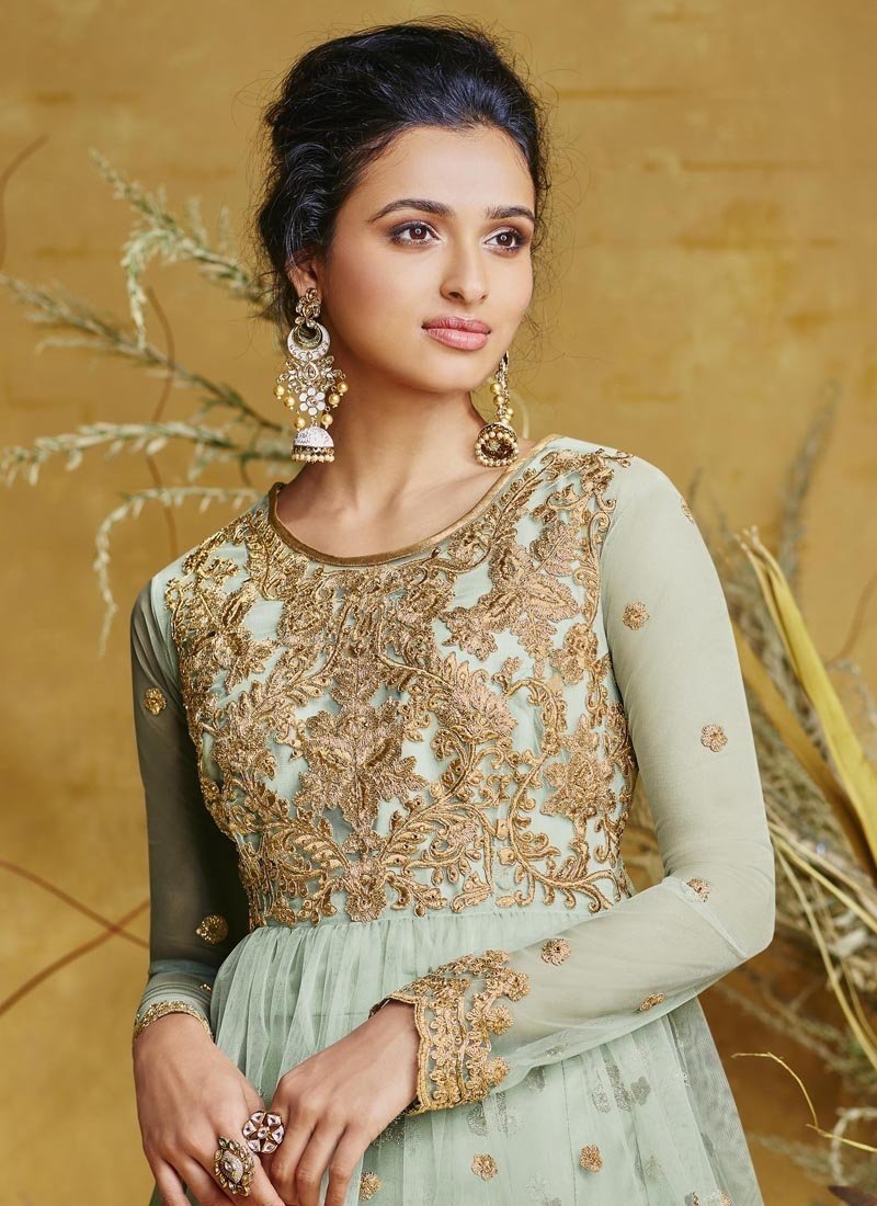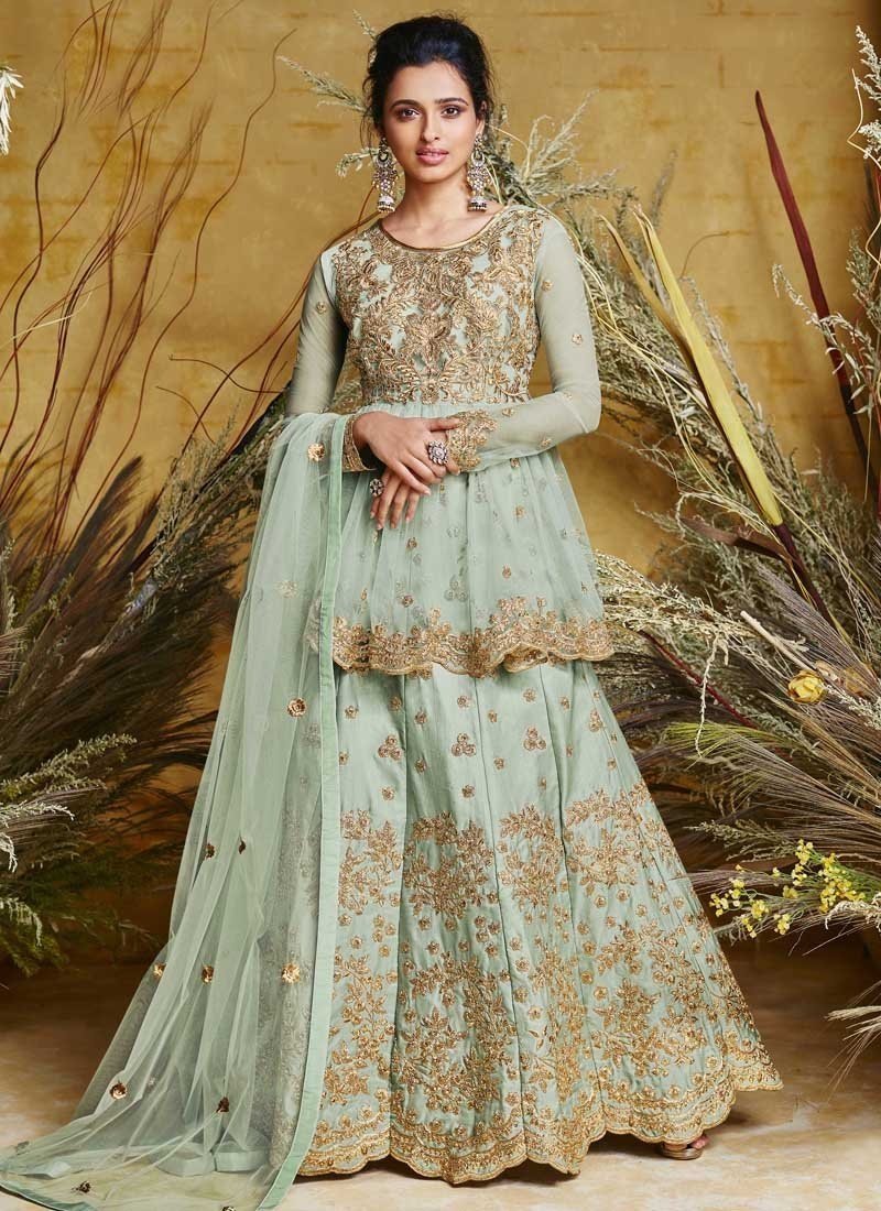Sea Green Heavy Net With Pure Silk Lehenga Anarkali