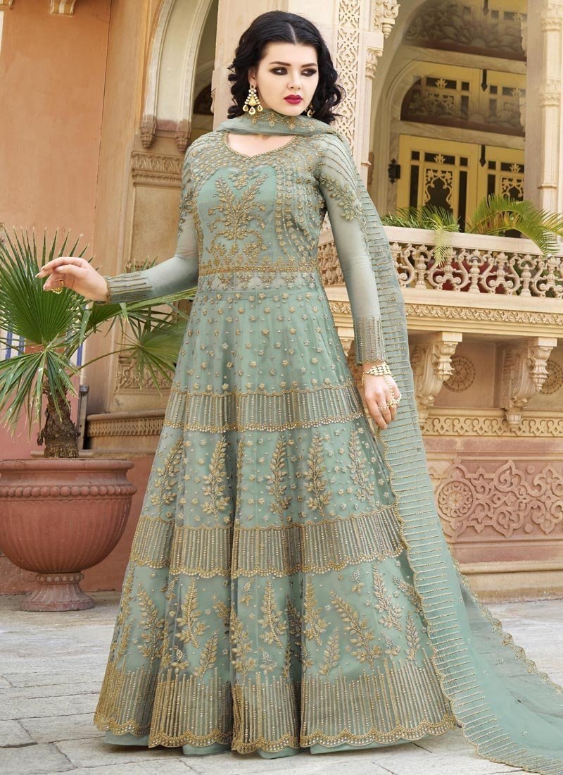 Sea Green Net Anarkali