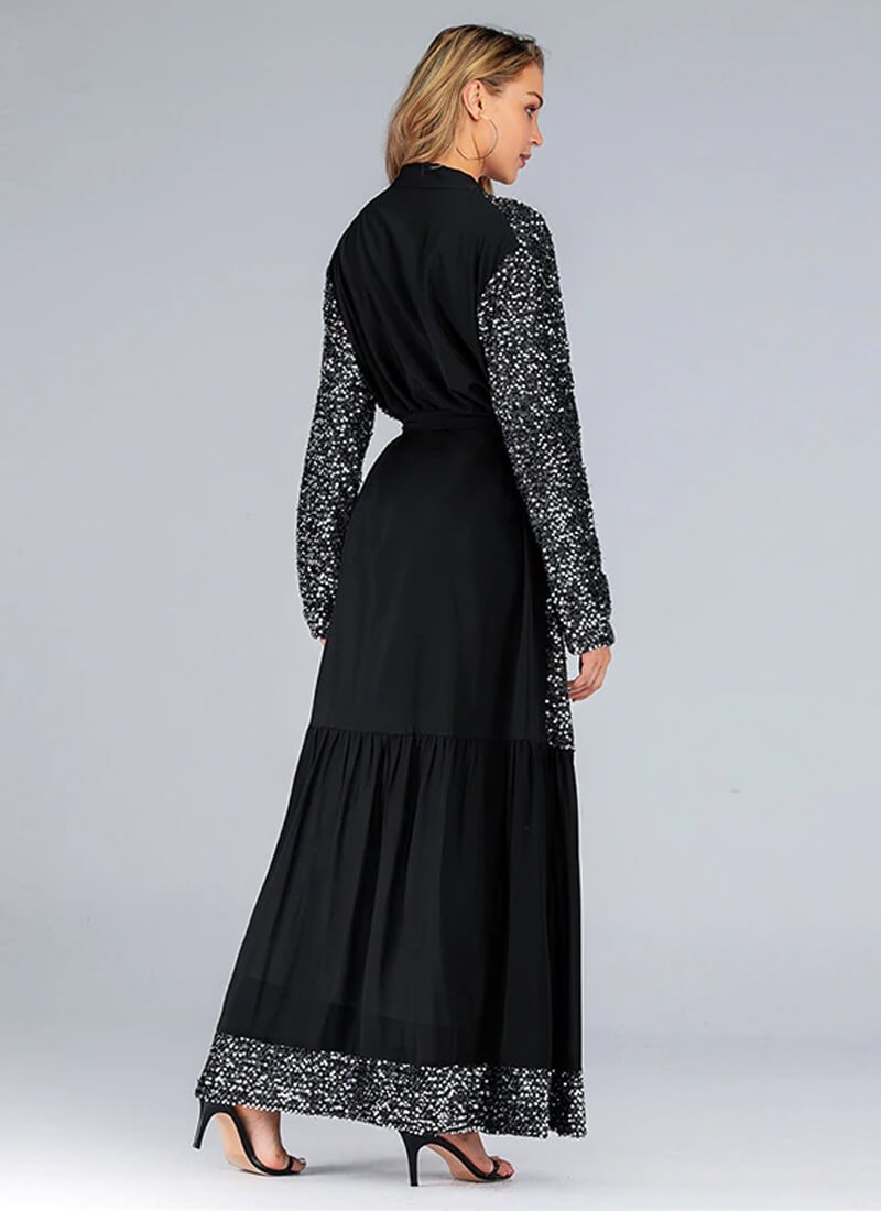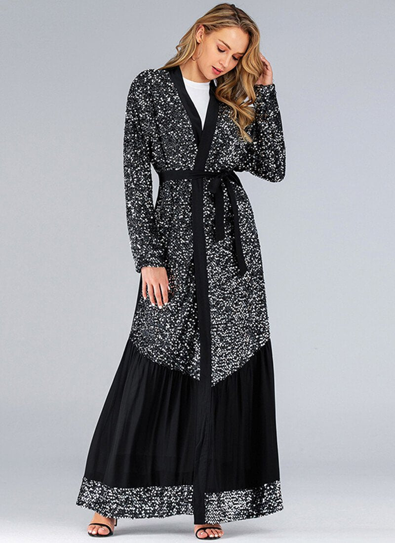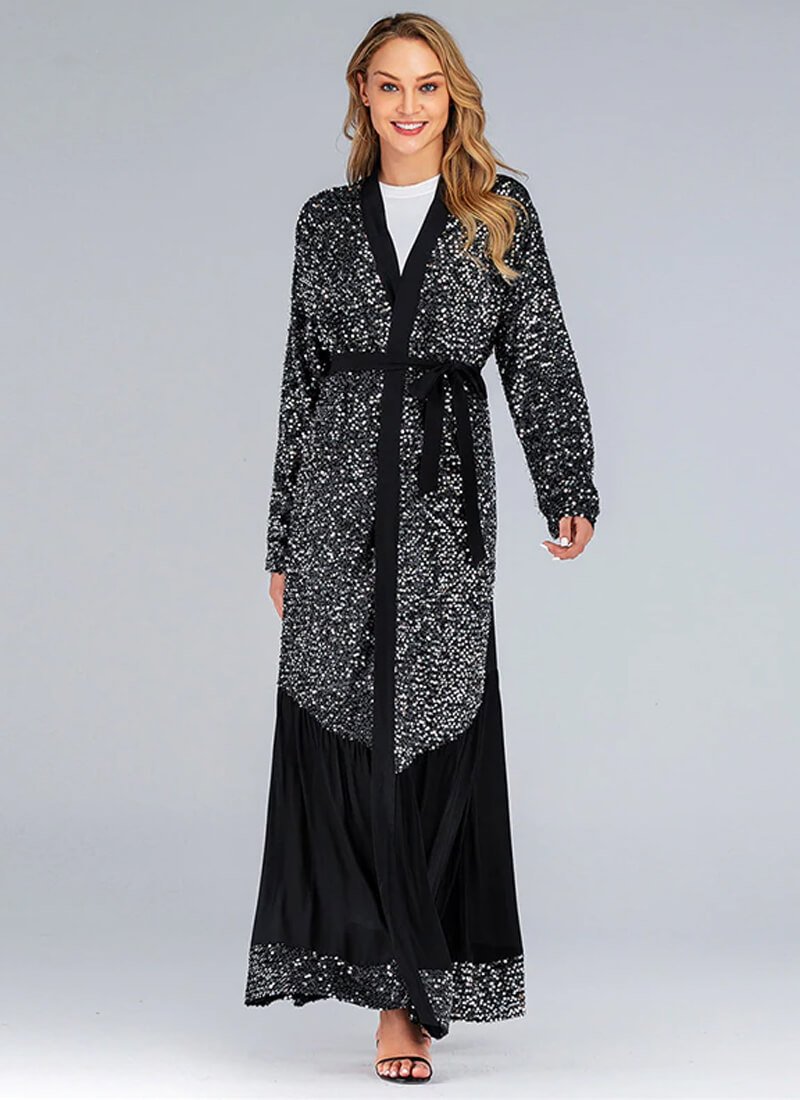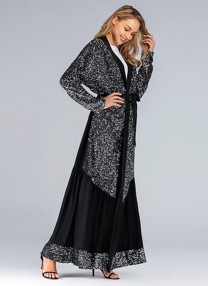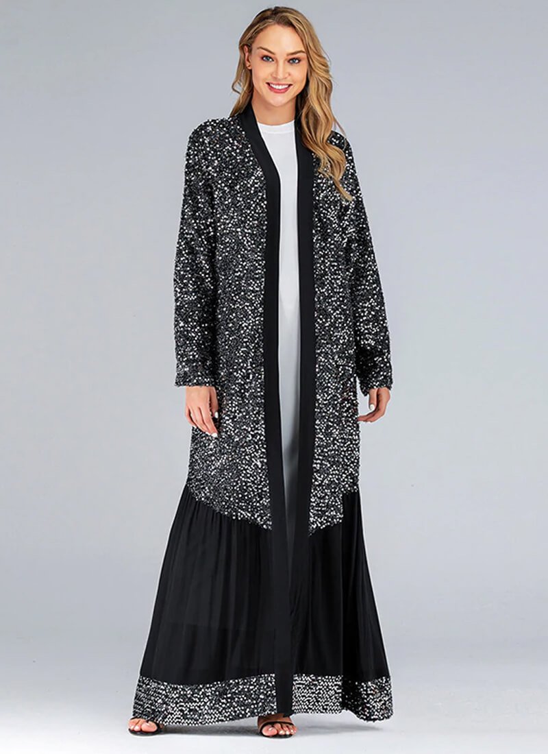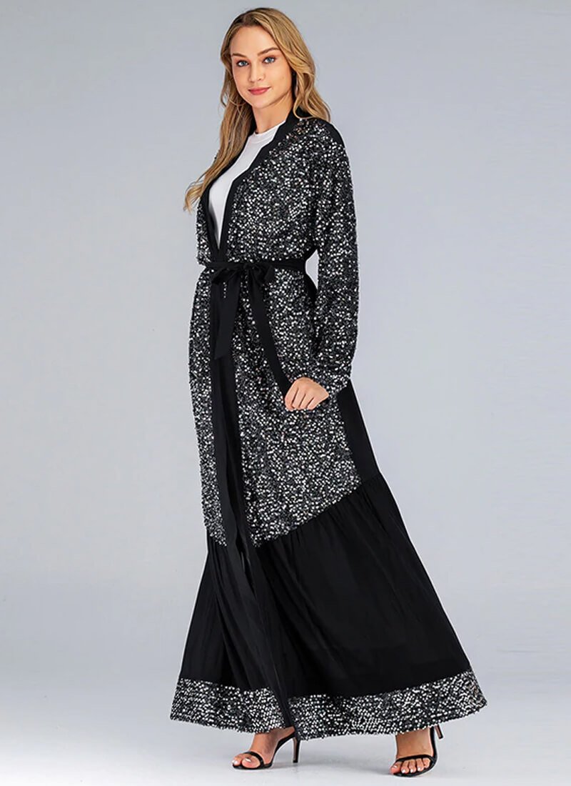 Chiffon party wear Muslim Abaya Kimono with Sequin Decorations