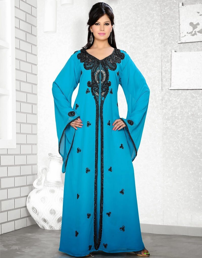 - If You Are A Diva Who Loves To Turn Heads Wherever You Go & This Delightful Drape Is A Must-Have Item For Your Closet. Make An Adorable Statement In This Smashy Slick Blue Jacket Style Kaftan.This Attire Is Nicely Designed With Embroidery & Hand Beaded Work.