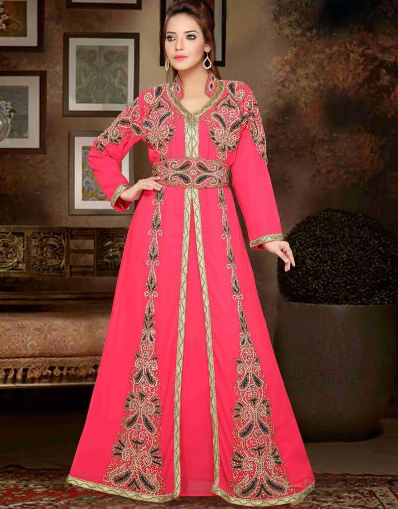 Stand Collar Moroccan caftan with golden work