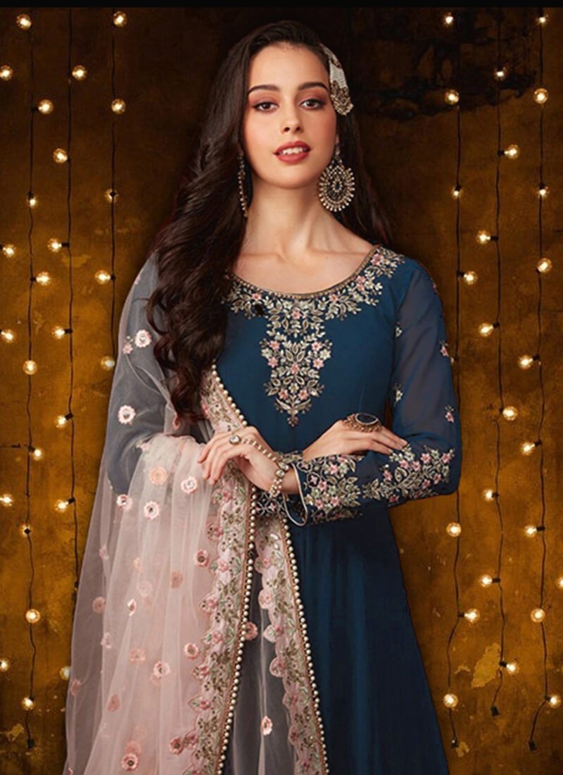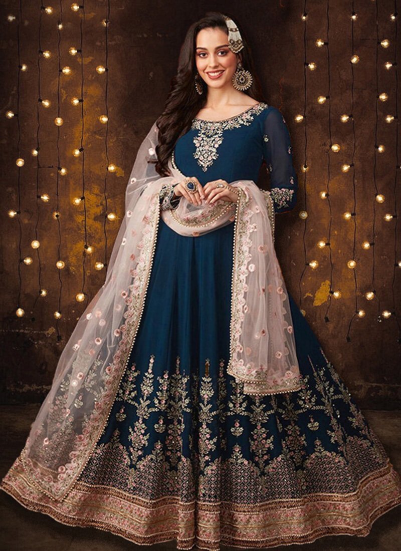Teal Blue Heavy Foux Georgette Anarkali Suit