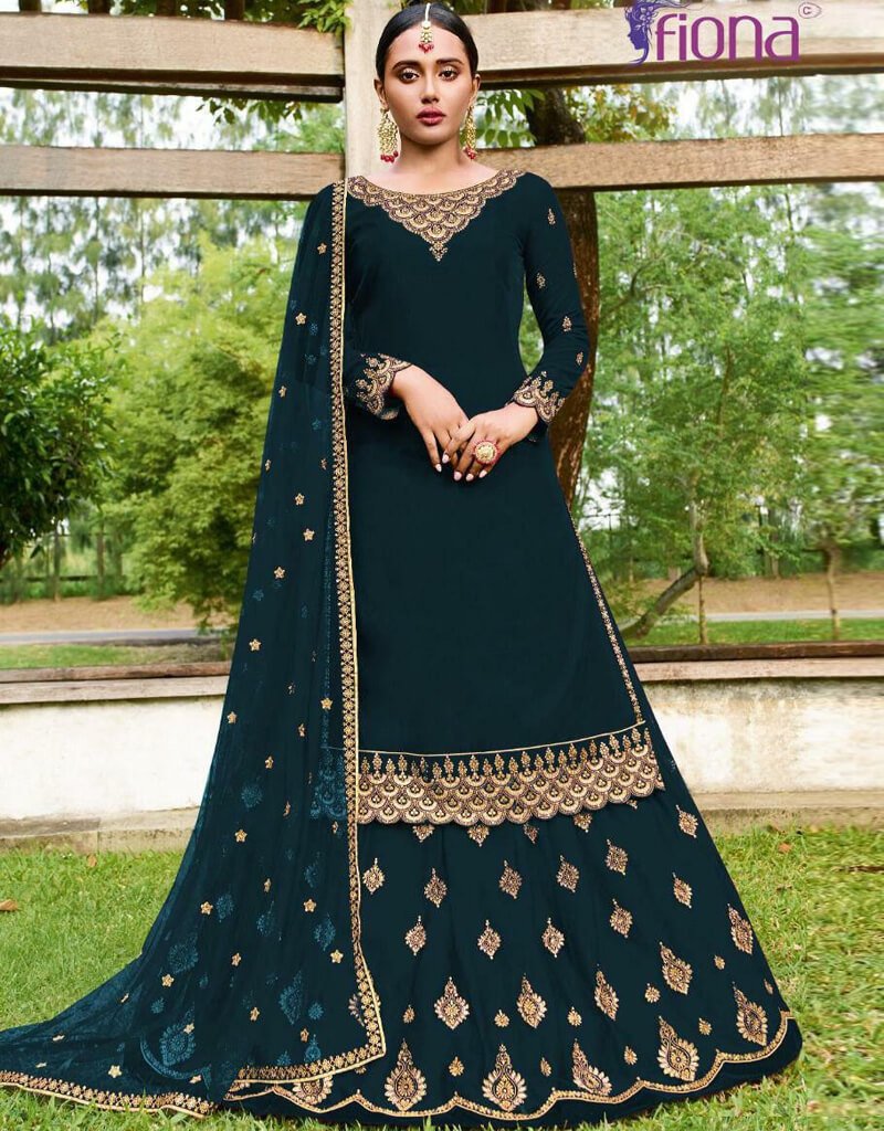 Teal Blue Heavy Fux Georgette Straight Lehenga