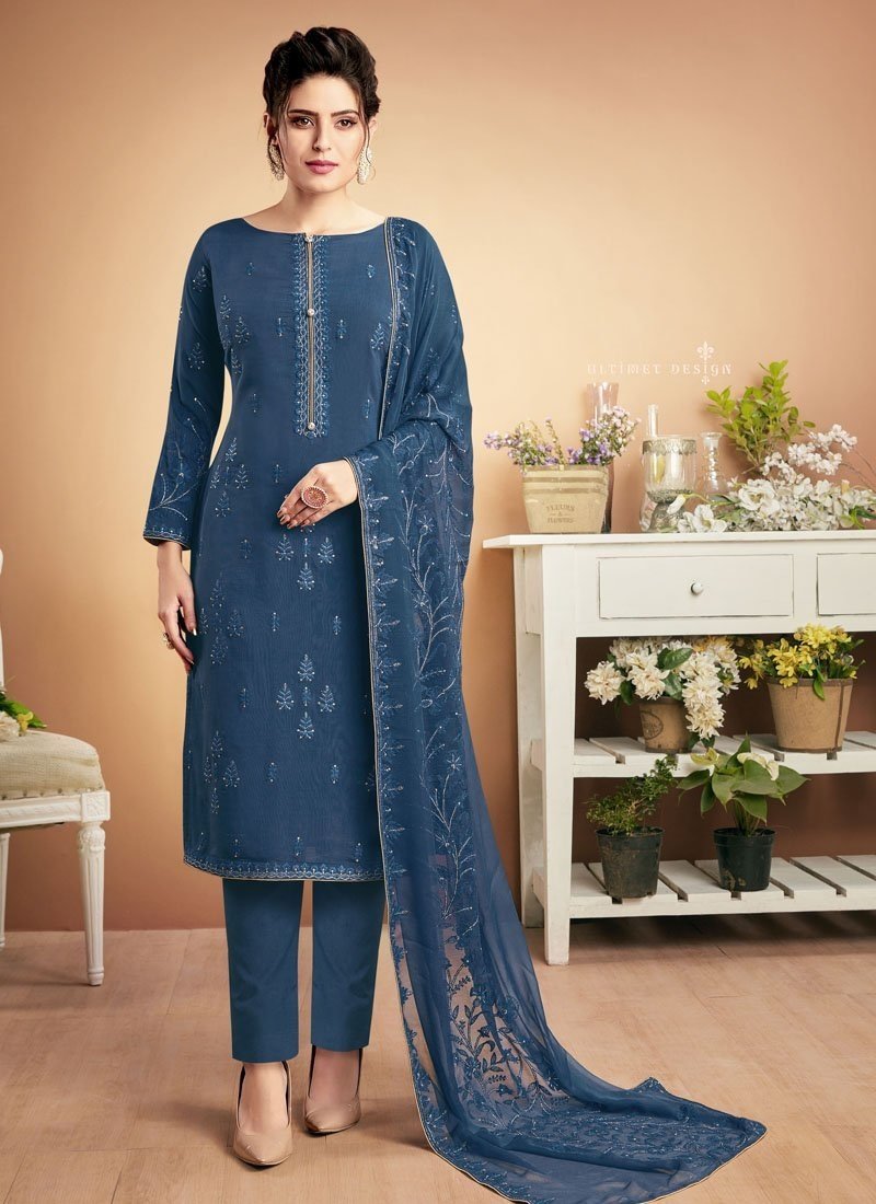 Designer Casual Wear Heavy Muslin Plazzo Suits
