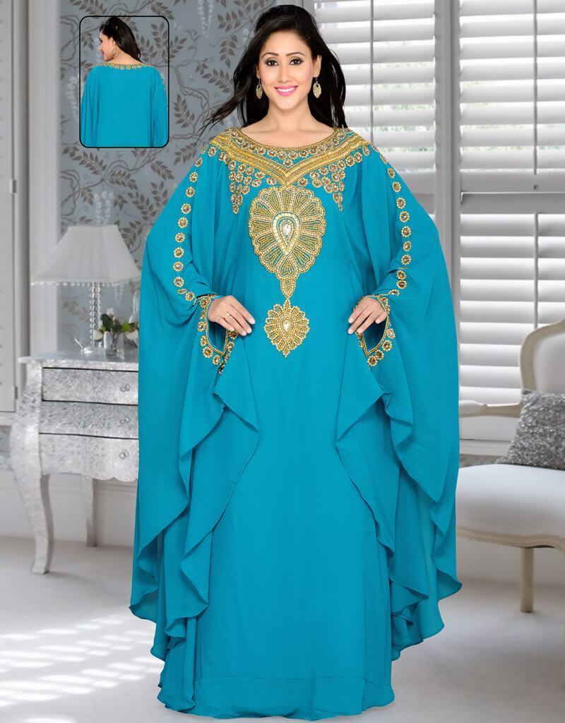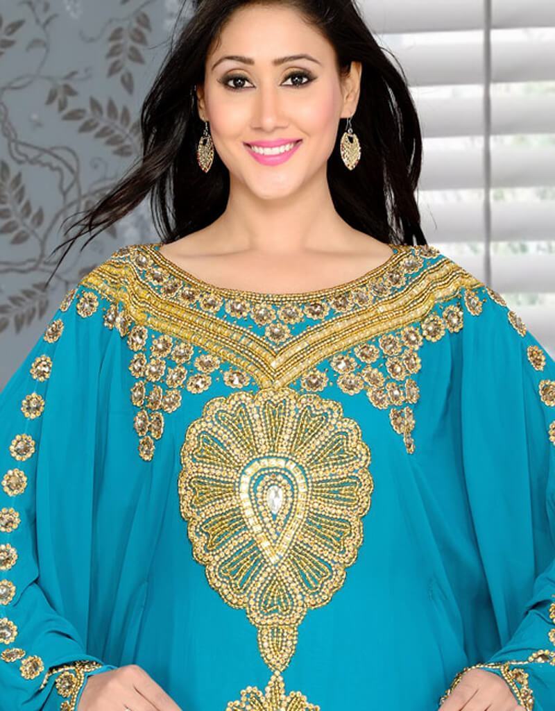- Capture The Exuberance Of Womanhood In Its Full Glory That Will Bring Out Your Fragility And Femininity. Style And Trend Will Be At The Peak Of Your Beauty When You Attire This Effective Embroidered Full Length Kaftan Dress.You Can See Some Fascinating Patterns Done With Embroidery & Hand Beaded Work.