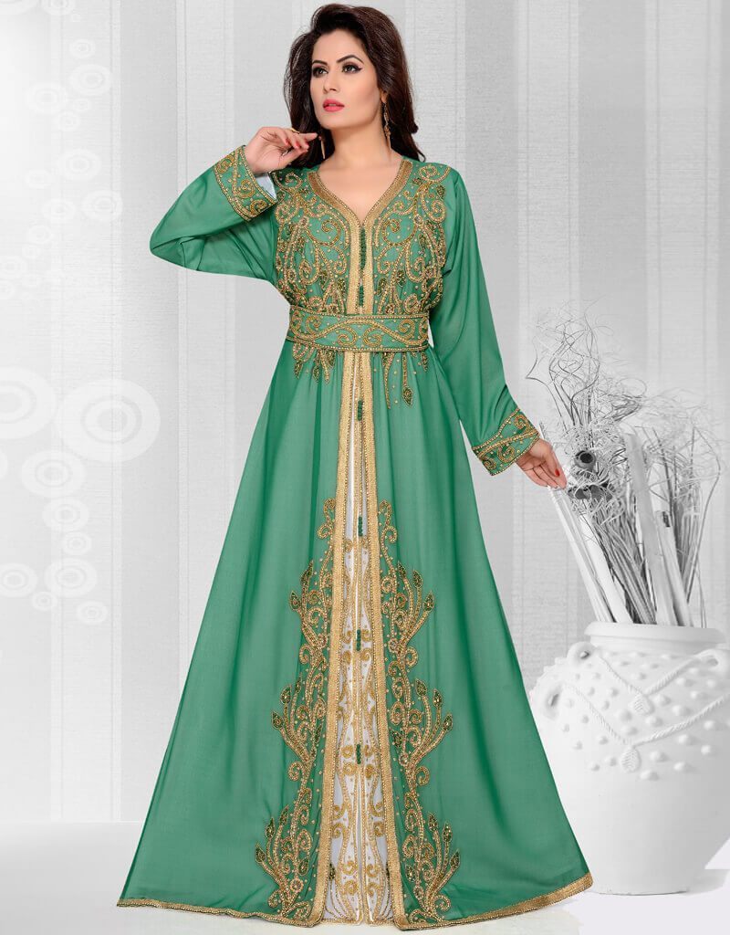 - Muslim Wedding or Parywear Caftans in Green color.