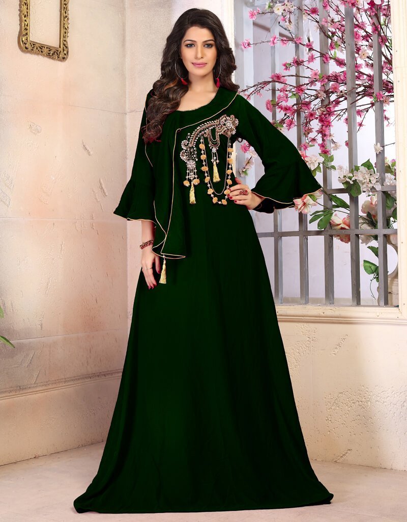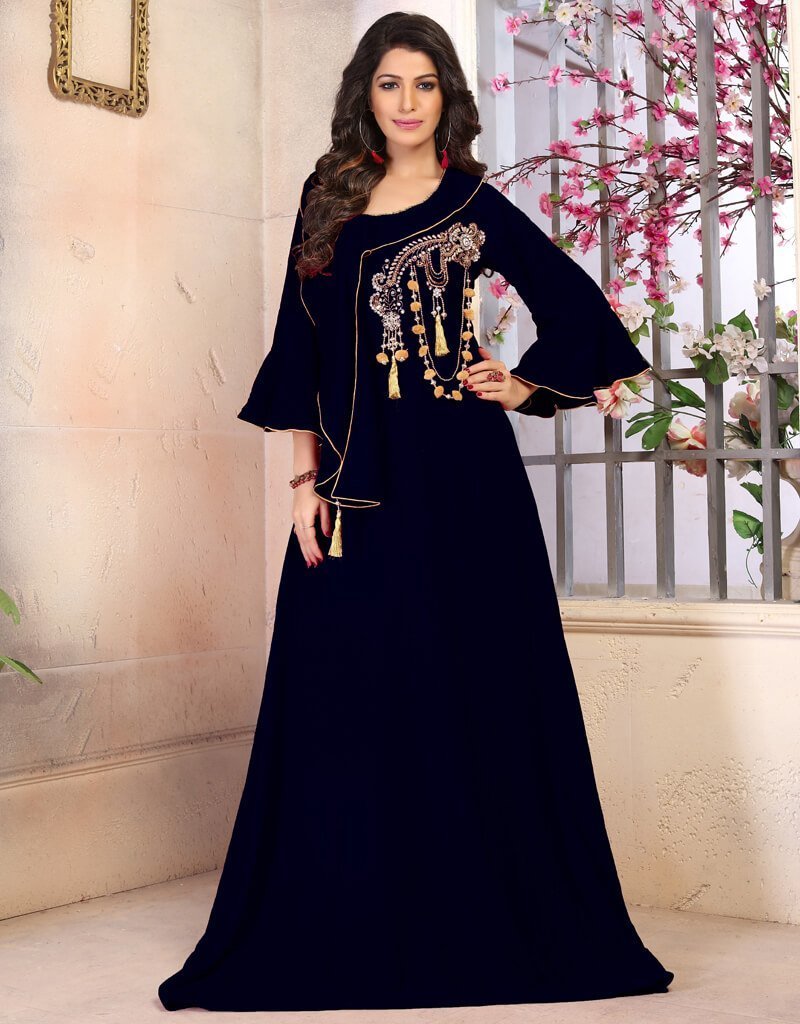 - Woman Georgette Abayas Color in Velvet Printed Fabric with Golden Embroidered Color Establishment