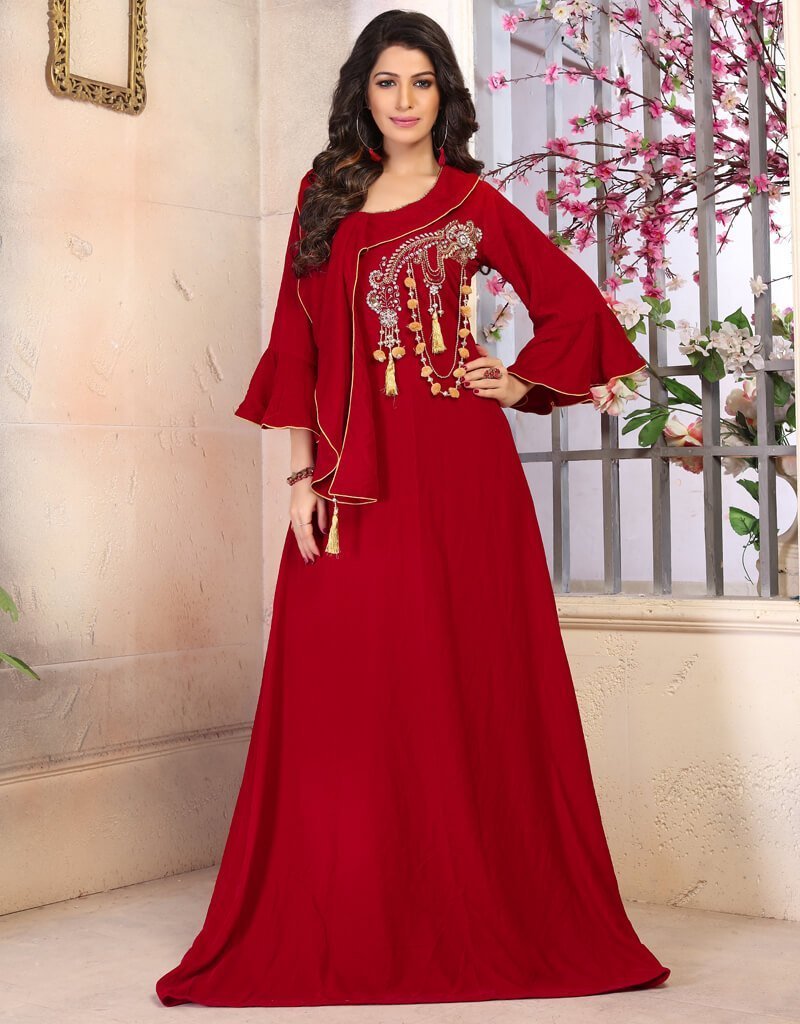- Women Hand beaded Caftans made with high quality materials, drawn by bead and crystals decor.