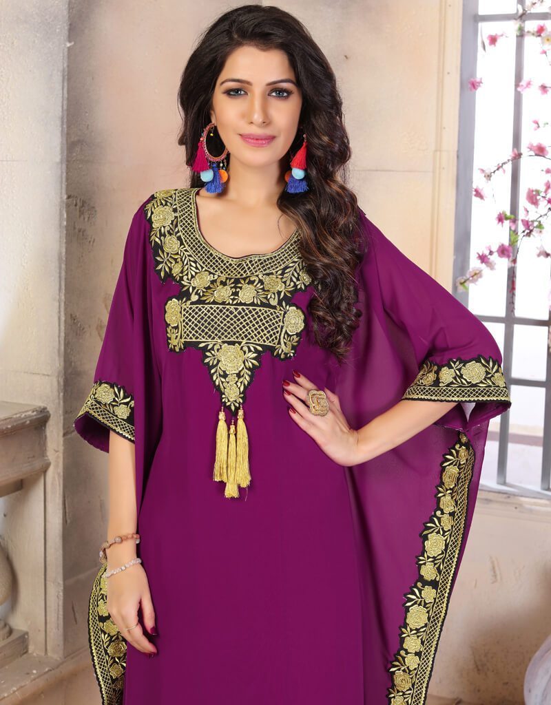 - Women Hand beaded Caftans made with high quality materials, drawn by bead and crystals decor.