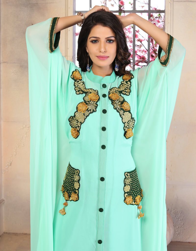 - Women Hand beaded Caftans made with high quality materials, drawn by bead and crystals decor.