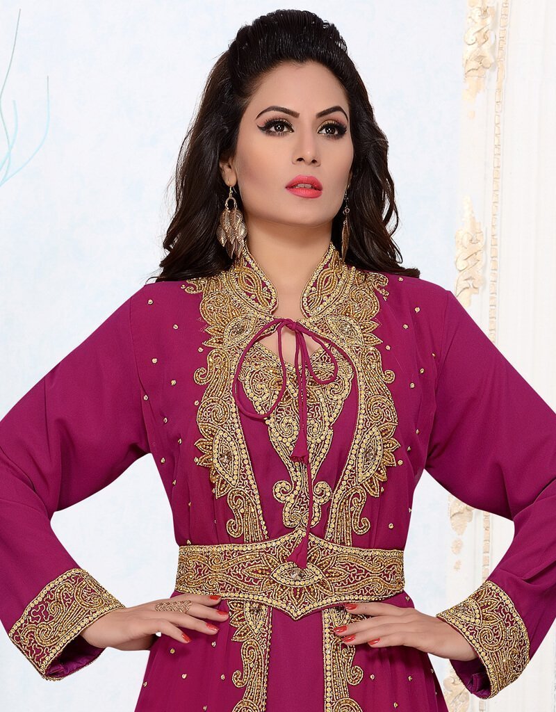 - Magenta colored Islamic heart shape moroccan style caftan dress